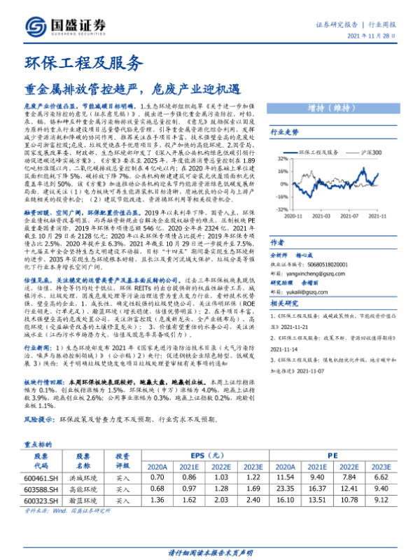 【国盛证券】【20211128】环保工程及服务:重金属排放管控趋严,危废产业迎机遇-14页