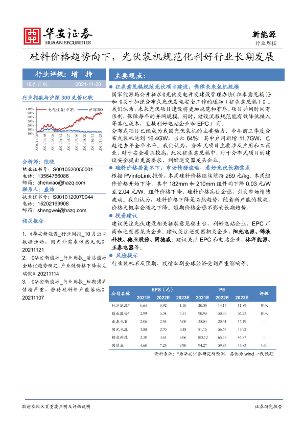 【华安证券】【20211128】硅料价格趋势向下,光伏装机规范化利好行业长期发展-15页