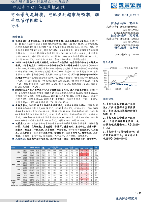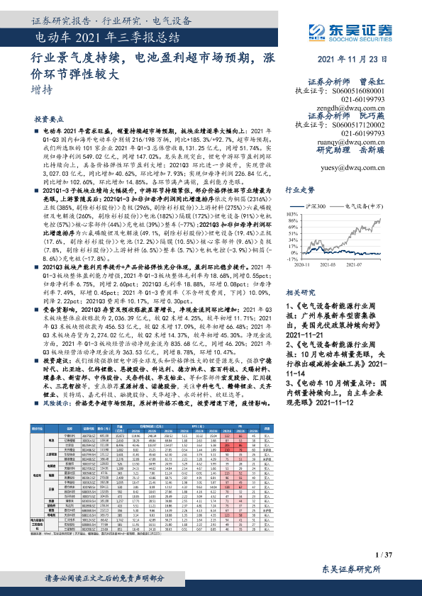 【东吴证券】【20211123】电动车2021年三季报总结-37页