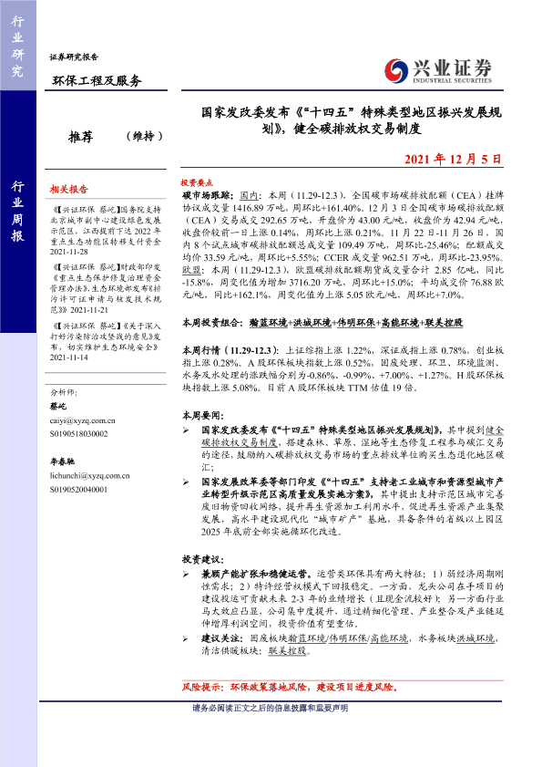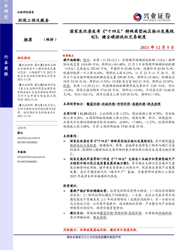 【兴业证券】【20211205】国家发改委发布《“十四五”特殊类型地区振兴发展规划》,健全碳排放权交易制度-11页