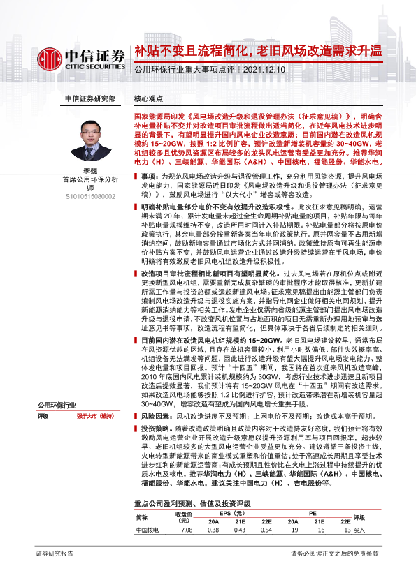 【中信证券】【20211210】公用环保行业重大事项点评:补贴不变且流程简化,老旧风场改造需求升温-3页