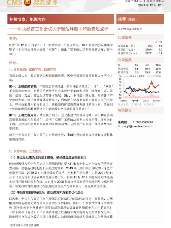 【海通证券】【20211212】环保及公用事业行业简评报告:中央经济工作会议关于碳达峰碳中和的表述点评:把握节奏,把握方向-3页