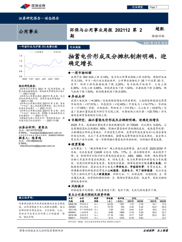 【国信证券】【20211212】环保与公用事业周报202112第2期:抽蓄电价形成及分摊机制渐明确,迎确定增长-30页