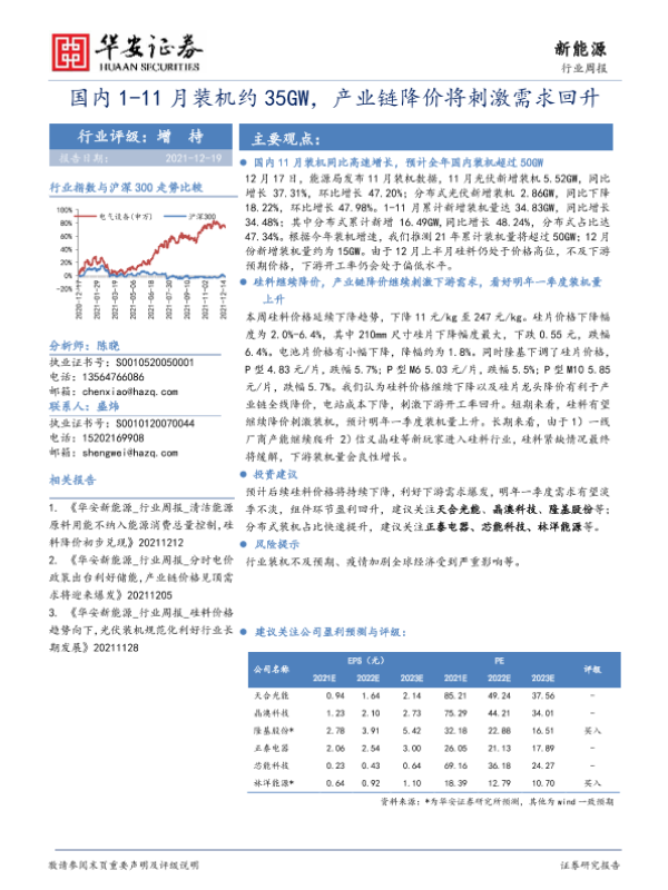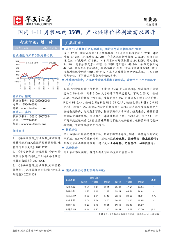 【华安证券】【20211219】国内1-11月装机约35GW,产业链降价将刺激需求回升-15页