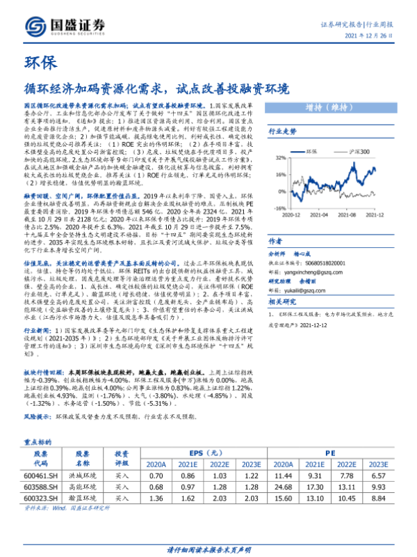 【国盛证券】【20211226】环保行业周报:循环经济加码资源化需求,试点改善投融资环境-12页