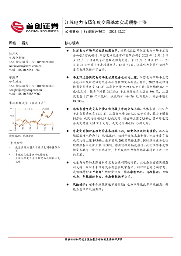 【首创证券】【20211227】江苏电力市场年度交易基本实现顶格上涨-6页