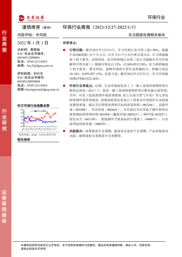 【东莞证券】【20220103】环保行业周报:关注固废处理相关板块-9页