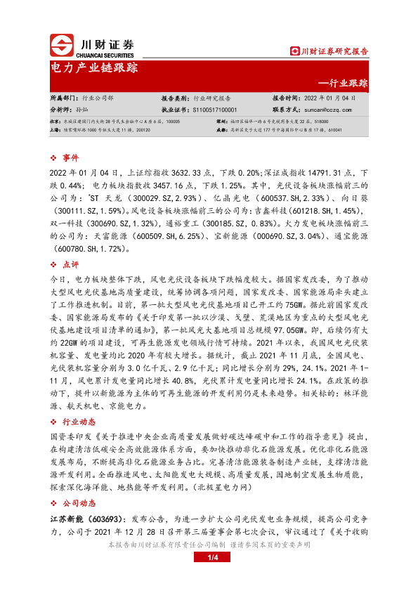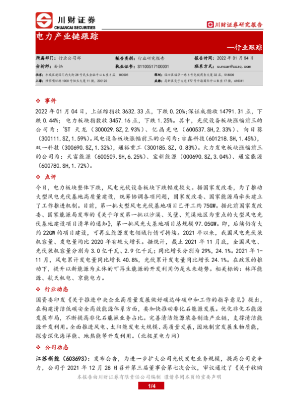 【川财证券】【20220104】电力产业链跟踪-4页