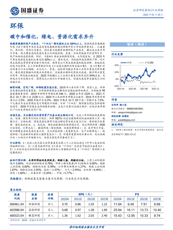 【国盛证券】【20220103】环保行业周报:碳中和催化,绿电、资源化需求齐升-13页