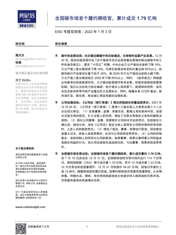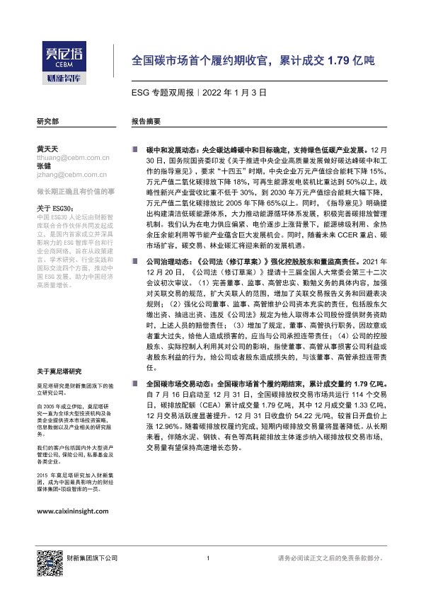 【莫尼塔研究】【20220103】全国碳市场首个履约期收官,累计成交1.79亿吨-8页
