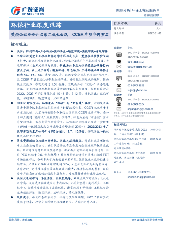 【广发证券】【20220109】焚烧企业纷纷开启第二成长曲线,CCER有望年内重启-13页