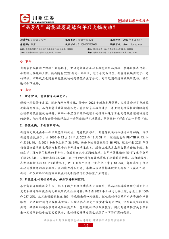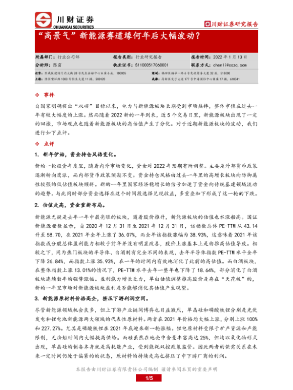 【川财证券】【20220113】“高景气”新能源赛道缘何年后大幅波动?-5页