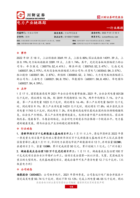 【川财证券】【20220118】电力产业链跟踪-4页