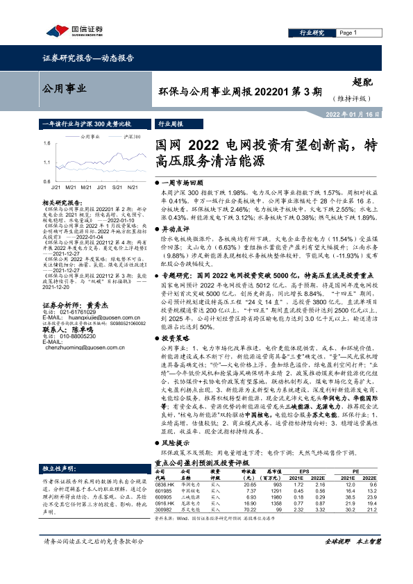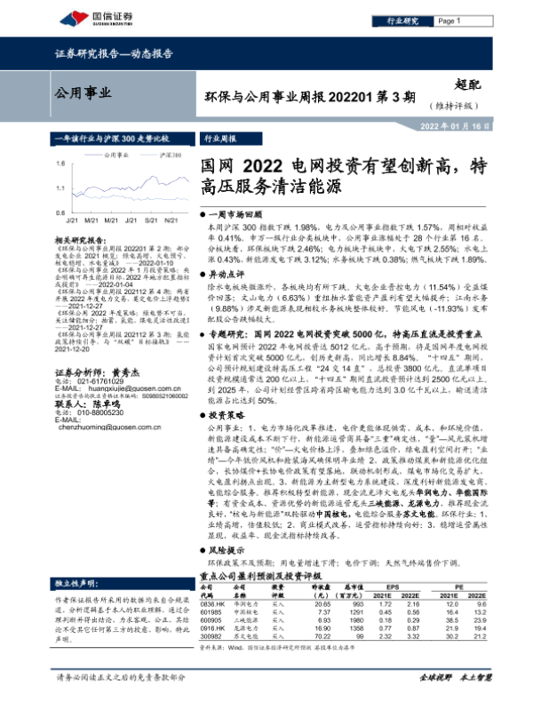 【国信证券】【20220116】环保与公用事业周报202201第3期:国网2022电网投资有望创新高,特高压服务清洁能源-28页