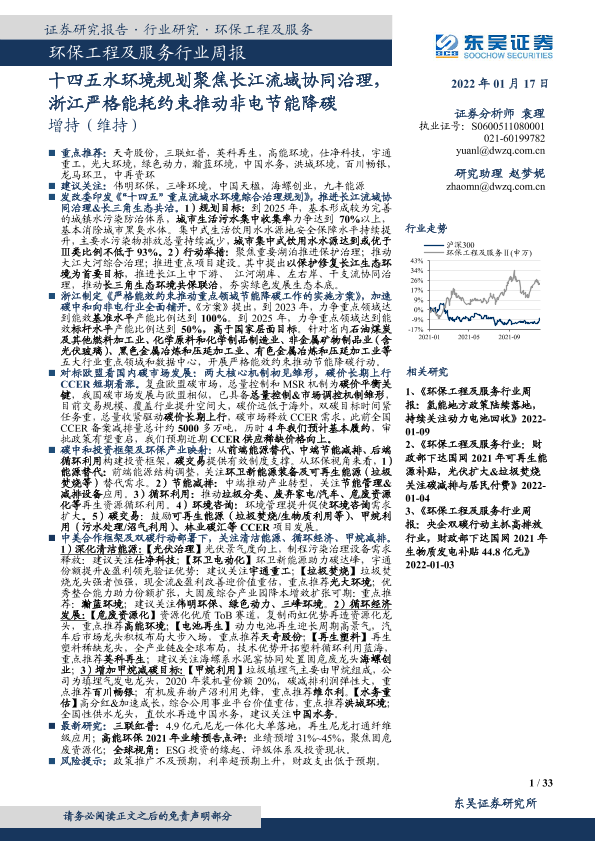 【东吴证券】【20220117】十四五水环境规划聚焦长江流域协同治理,浙江严格能耗约束推动非电节能降碳-33页