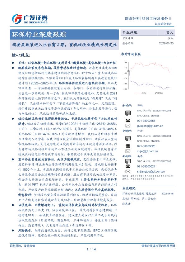 【广发证券】【20220123】环保行业深度跟踪:纲要类政策进入出台窗口期,重视板块业绩成长确定性-14页