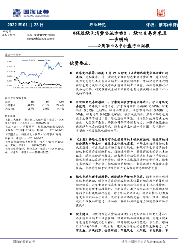 【国海证券】【20220123】《促进绿色消费实施方案》:绿电交易需求进一步明确-17页