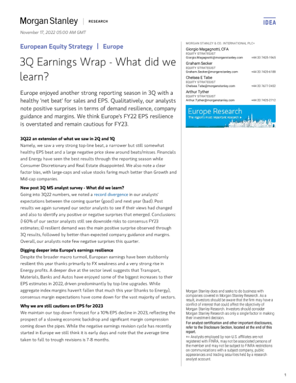 【Morgan Stanley】【20221117】nley-European Equity Strategy 3Q Earnings Wrap - What did we learn-23页