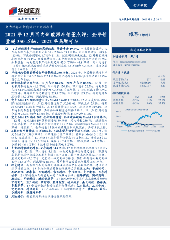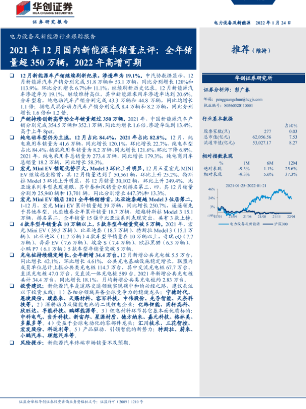 【华创证券】【20220124】2021年12月国内新能源车销量点评:全年销量超350万辆,2022年高增可期-13页