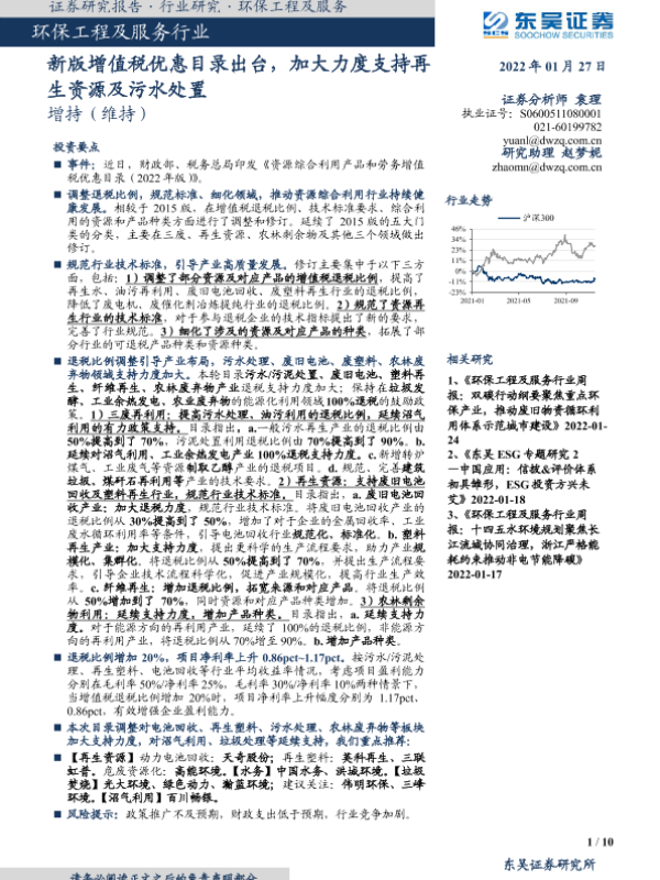 【东吴证券】【20220127】新版增值税优惠目录出台,加大力度支持再生资源及污水处置-10页