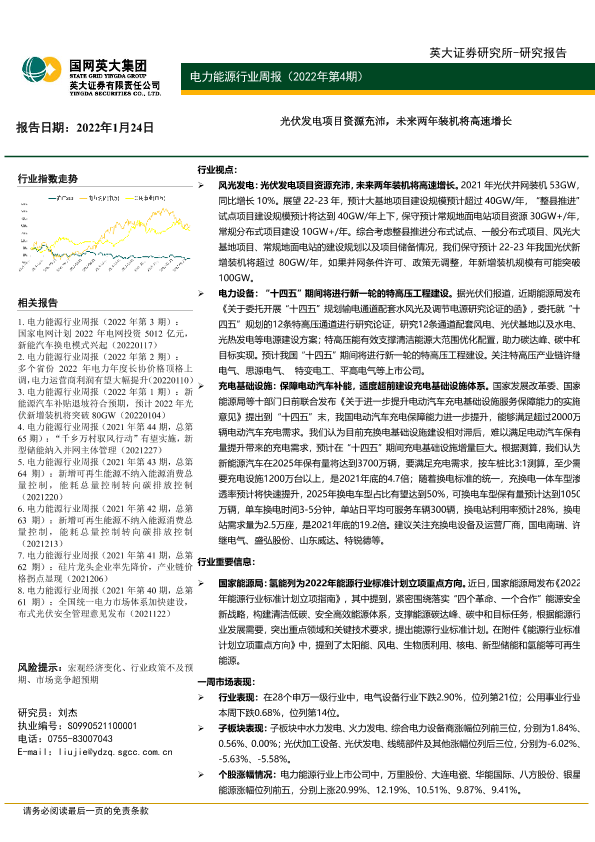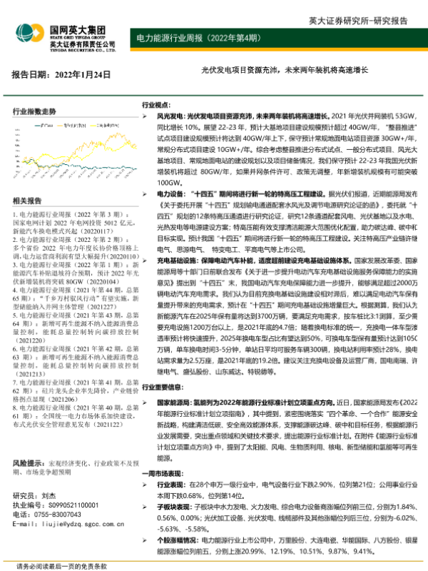 【英大证券】【20220124】电力能源行业周报:光伏发电项目资源充沛,未来两年装机将高速增长-33页
