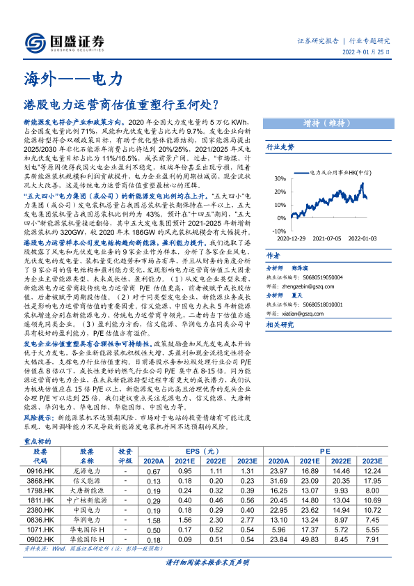 【国盛证券】【20220125】电力行业专题研究:港股电力运营商估值重塑行至何处?-46页