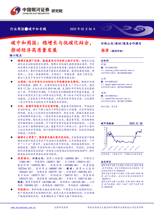 【银河证券】【20220206】碳中和周报:稳增长与低碳化结合,推动经济高质量发展-20页