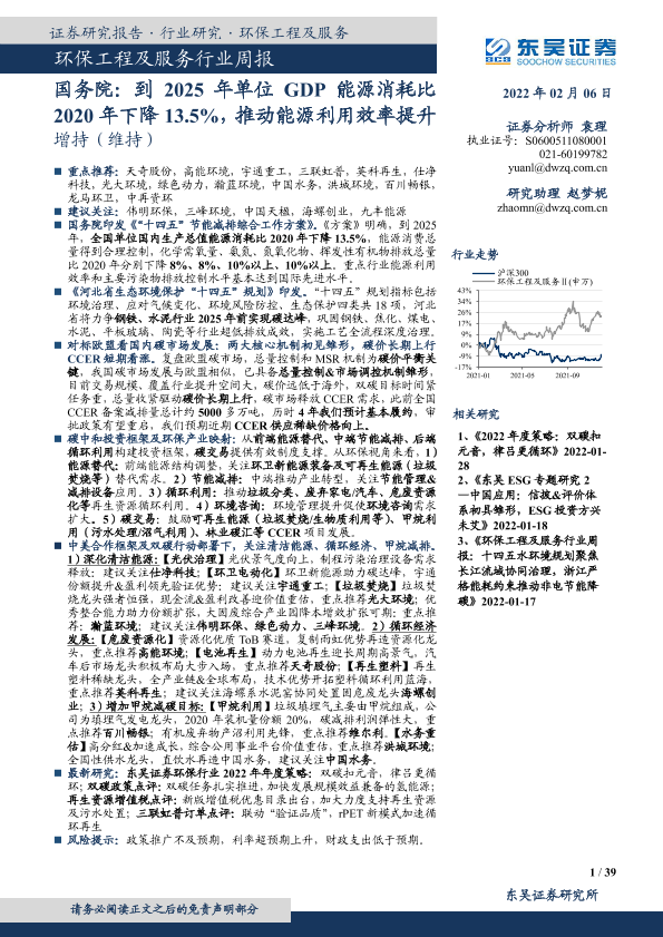 【东吴证券】【20220206】环保工程及服务行业周报:国务院发布节能减排综合工作方案-39页