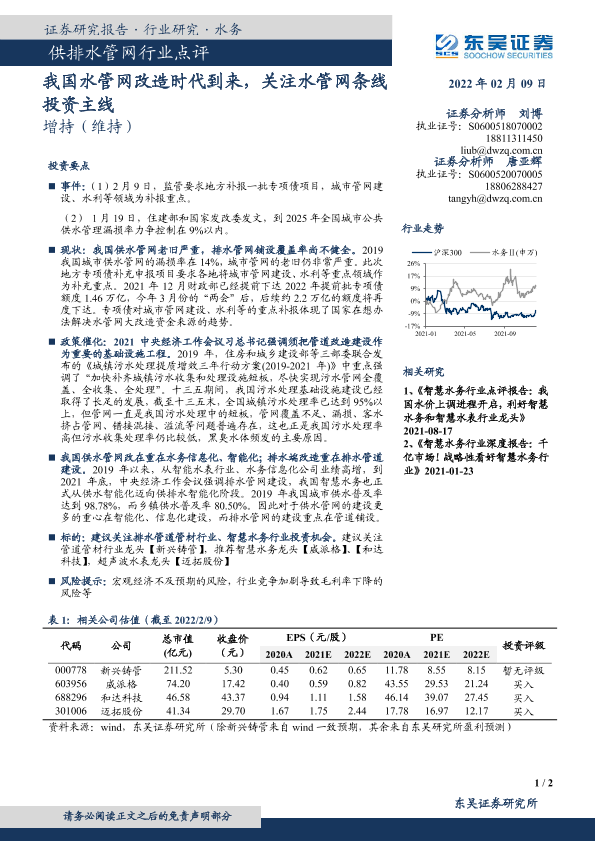 【东吴证券】【20220209】供排水管网行业点评:我国水管网改造时代到来,关注水管网条线投资主线-2页