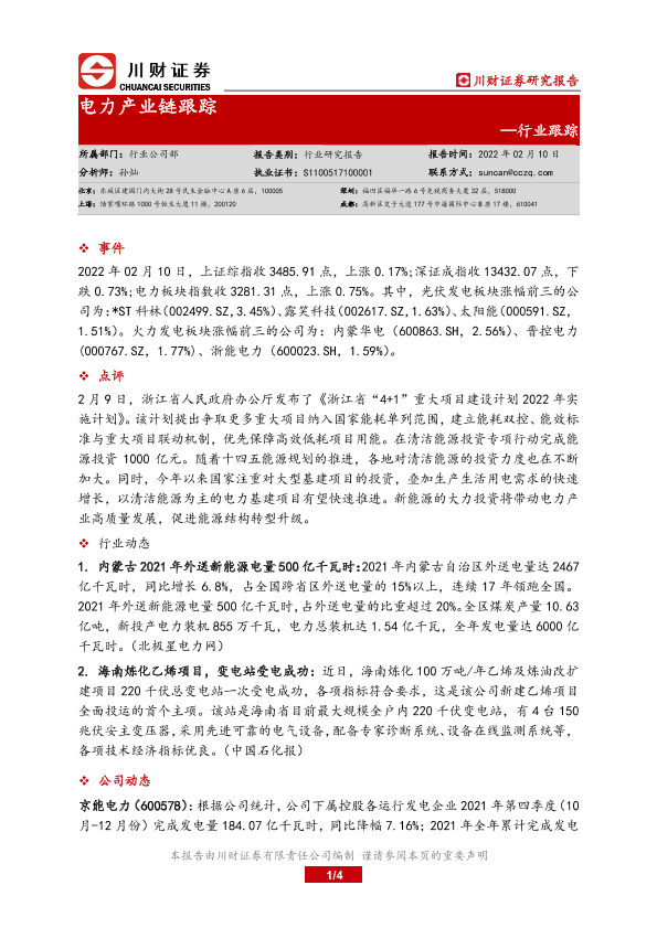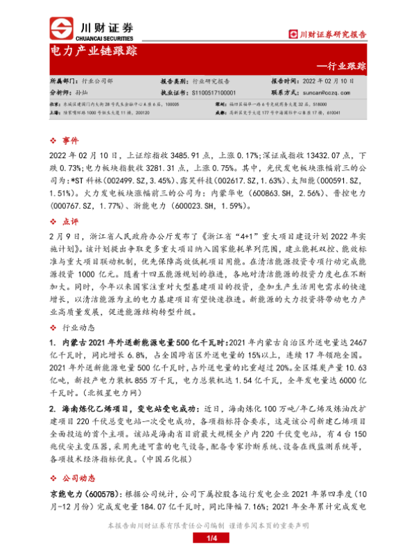 【川财证券】【20220210】电力产业链跟踪-4页