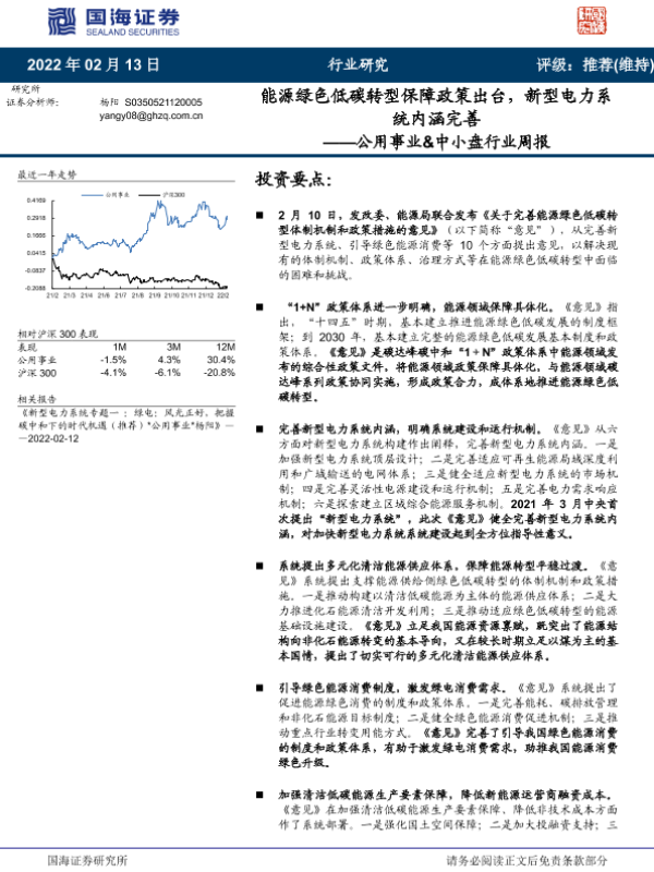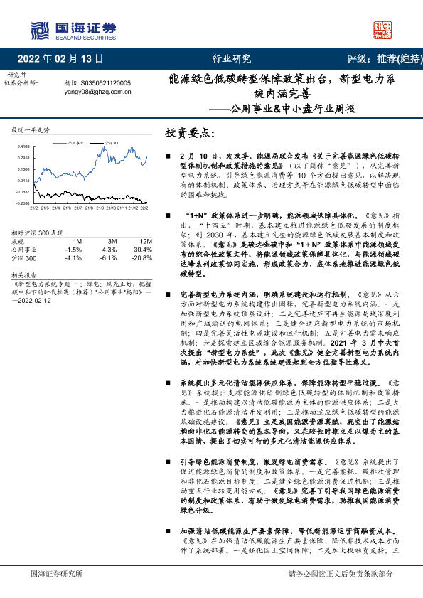 【国海证券】【20220213】能源绿色低碳转型保障政策出台,新型电力系统内涵完善-14页