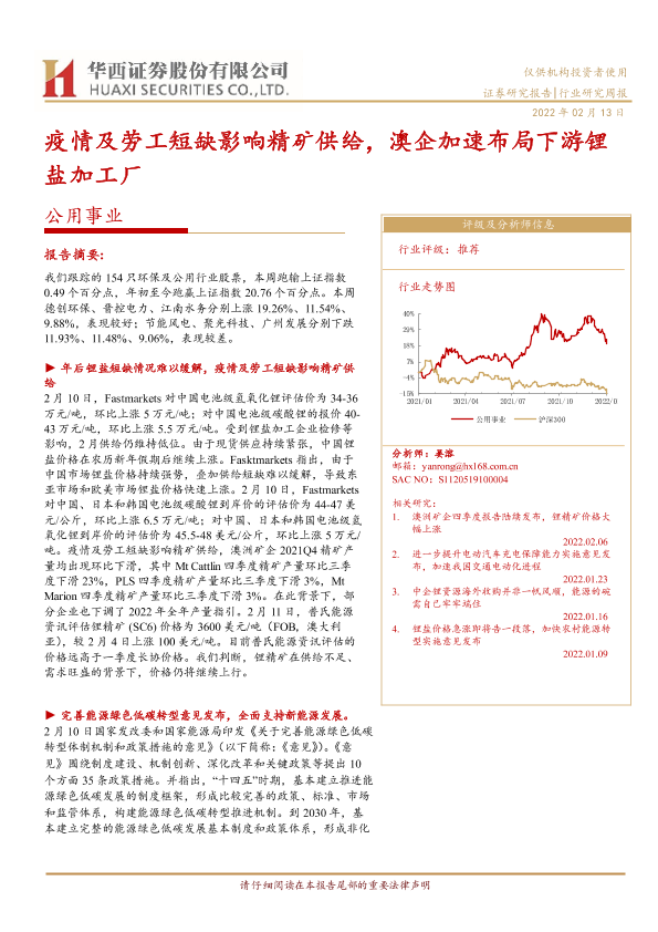 【华西证券】【20220213】疫情及劳工短缺影响精矿供给,澳企加速布局下游锂盐加工厂-17页