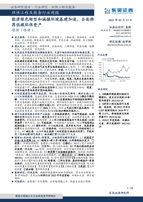 【东吴证券】【20220213】环保工程及服务行业周报:能源绿色转型和城镇环境基建加速,全面推荐低碳环保资产-34页