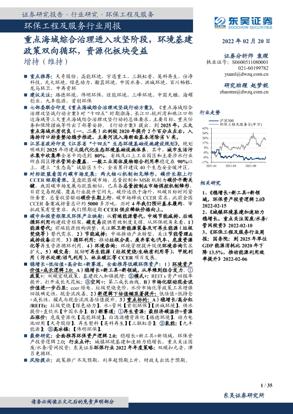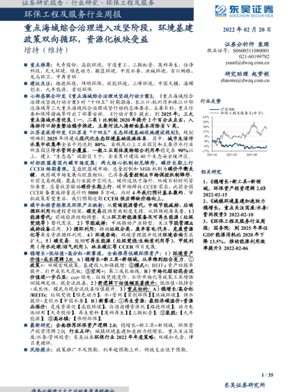 【东吴证券】【20220220】环保工程及服务行业周报:重点海域综合治理进入攻坚阶段,环境基建政策双向循环,资源化板块受益-35页