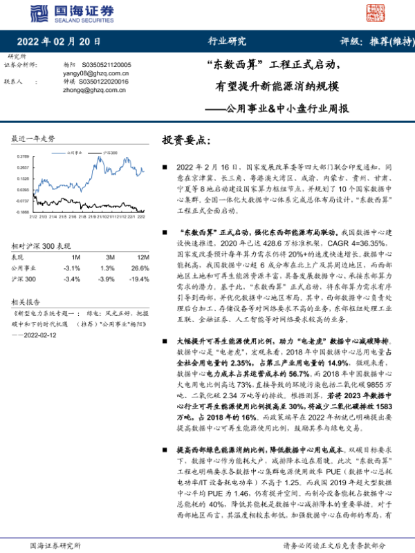 【国海证券】【20220220】‘东数西算’工程正式启动,有望提升新能源消纳规模-22页