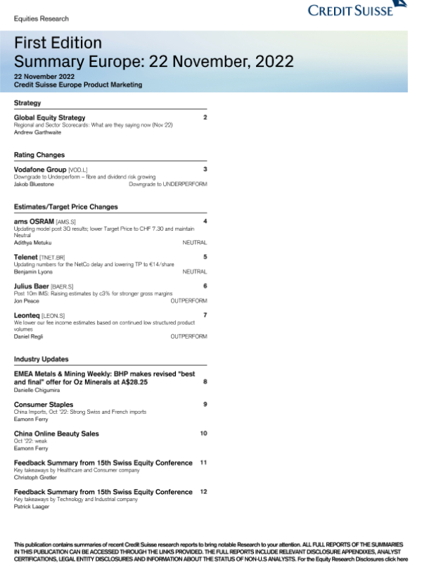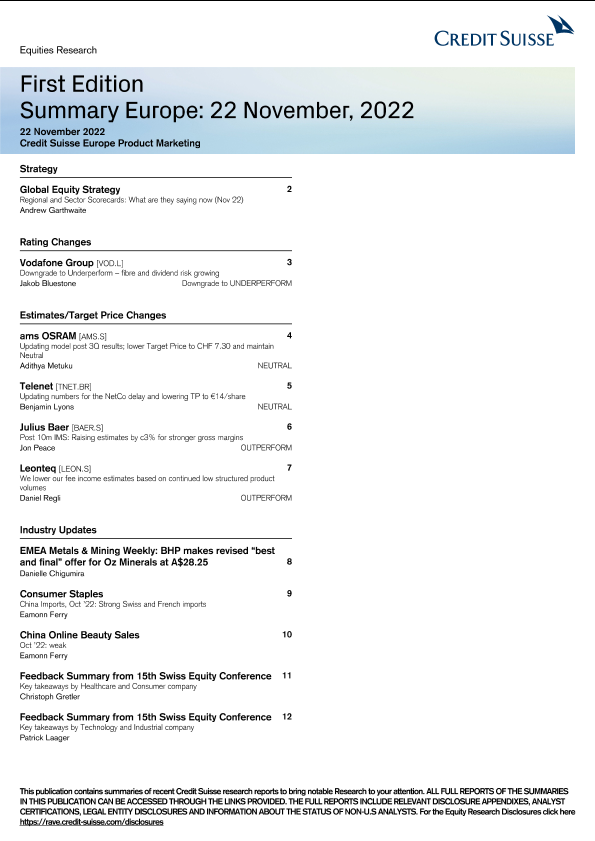 【Credit Suisse】【20221122】Summary Europe 22 November, 2022-12页