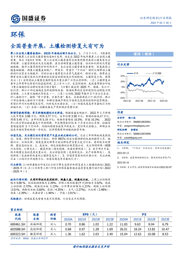 【国盛证券】【20220220】环保行业周报:全国普查开展,土壤检测修复大有可为-14页