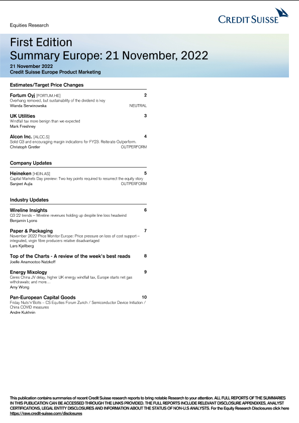 【Credit Suisse】【20221121】Summary Europe 21 November, 2022-10页