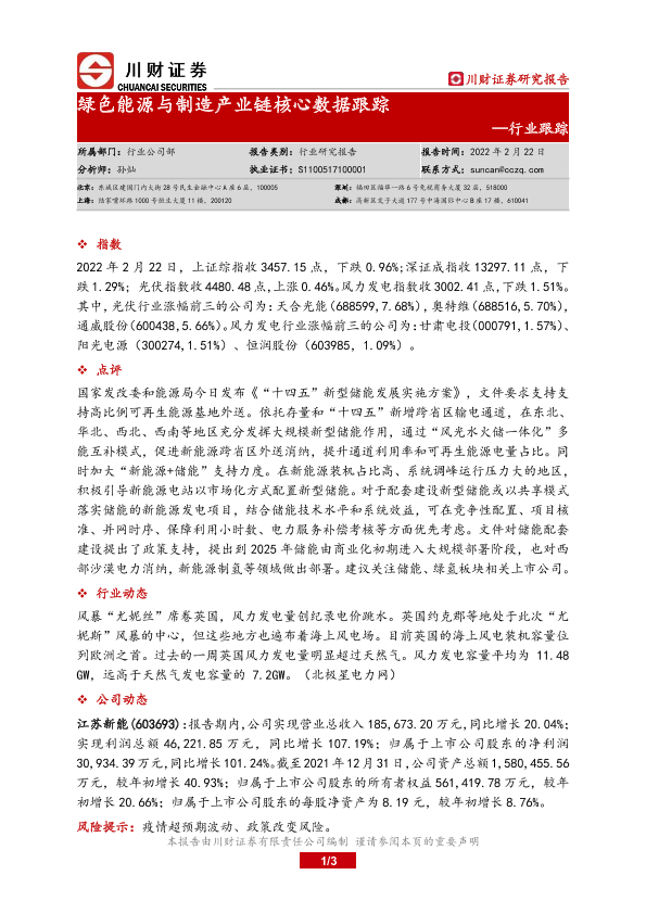【川财证券】【20220222】绿色能源与制造产业链核心数据跟踪-3页