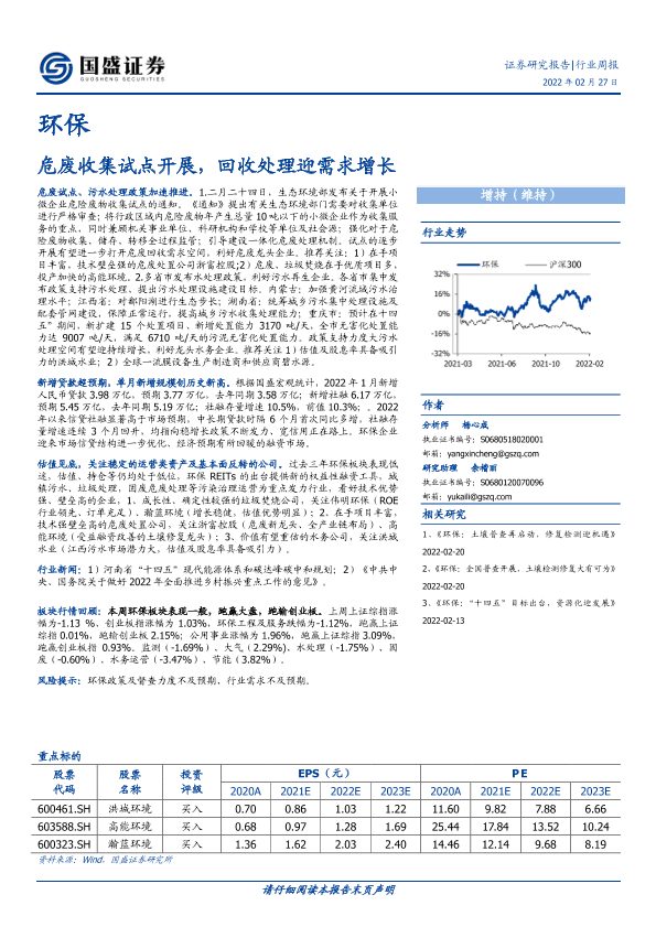 【国盛证券】【20220227】环保行业周报:危废收集试点开展,回收处理迎需求增长-14页