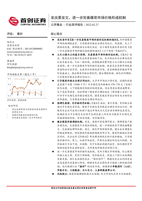【首创证券】【20220227】发改委发文,进一步完善煤炭市场价格形成机制-6页