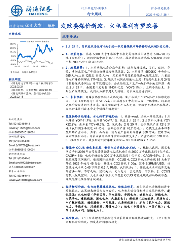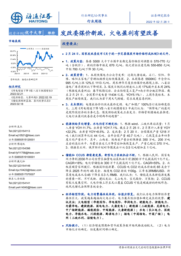 【海通证券】【20220228】发改委煤价新政,火电盈利有望改善-2页