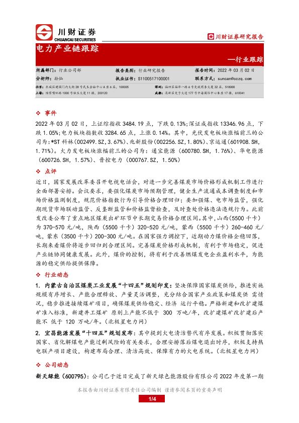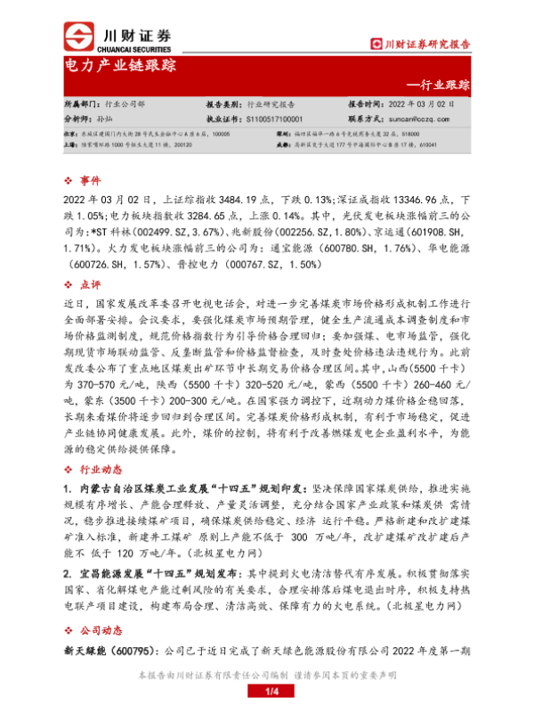 【川财证券】【20220302】电力产业链跟踪-4页