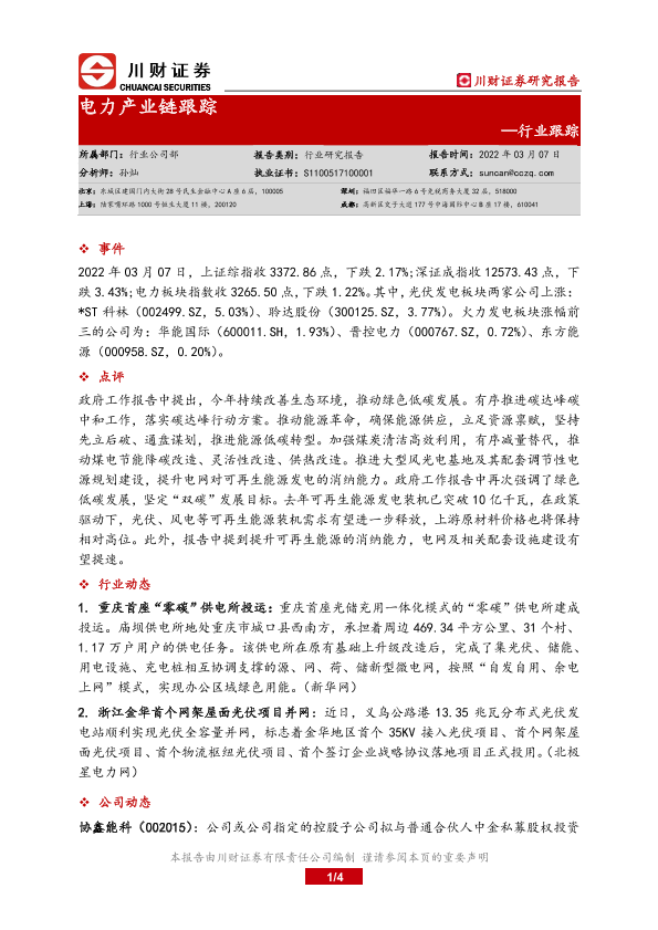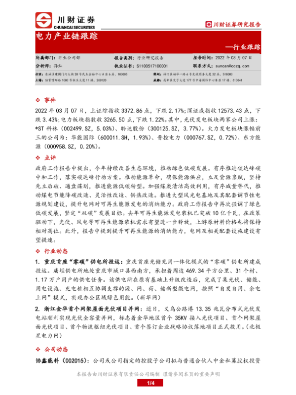 【川财证券】【20220307】电力产业链跟踪-4页