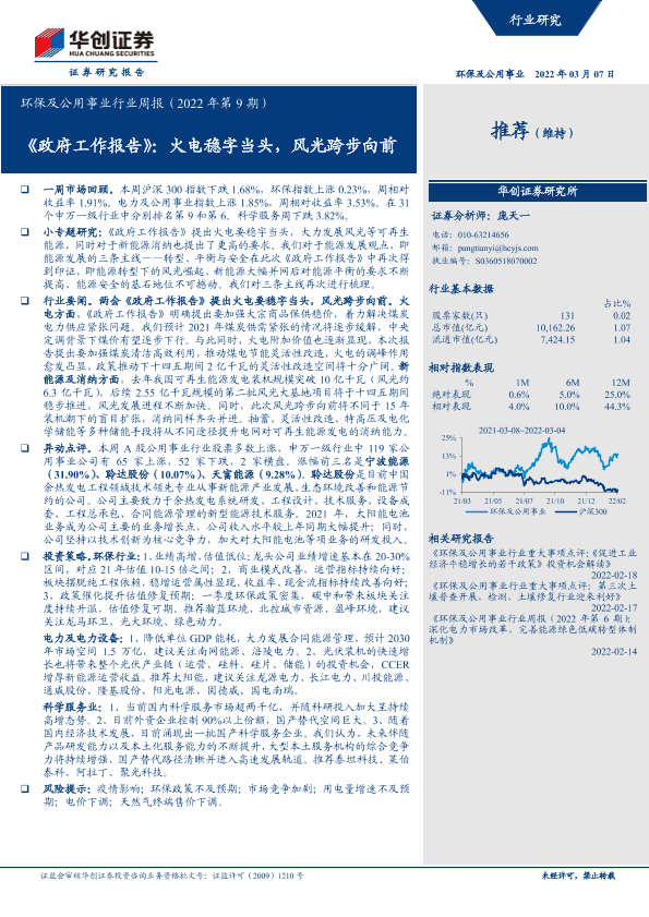【华创证券】【20220307】政府工作报告:火电稳字当头,风光跨步向前-16页