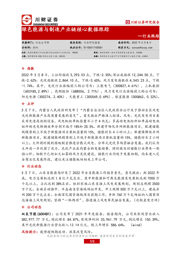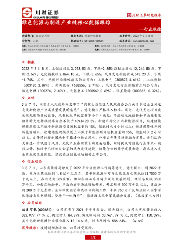 【川财证券】【20220308】绿色能源与制造产业链核心数据跟踪-3页