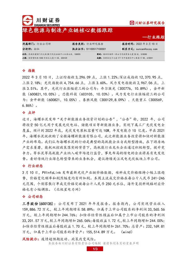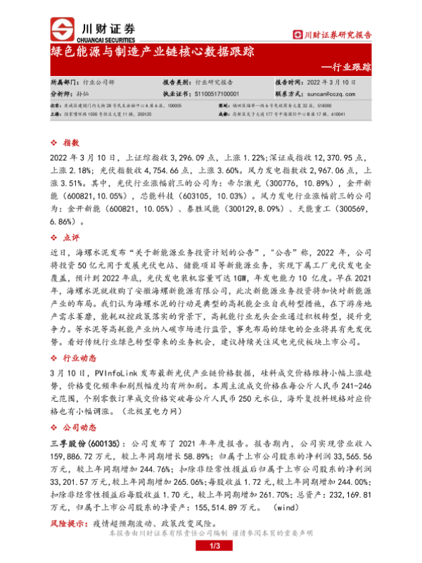 【川财证券】【20220310】绿色能源与制造产业链核心数据跟踪-3页
