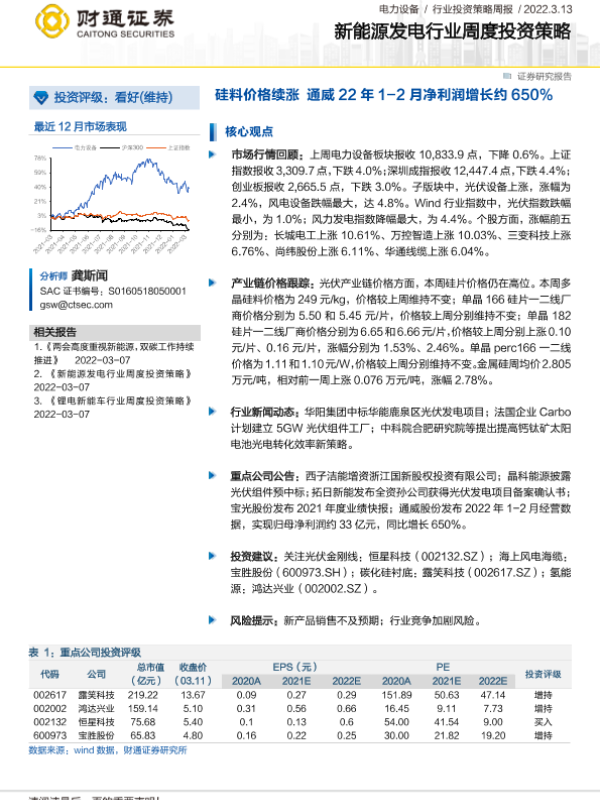 【财通证券】【20220313】新能源发电行业周度投资策略-17页