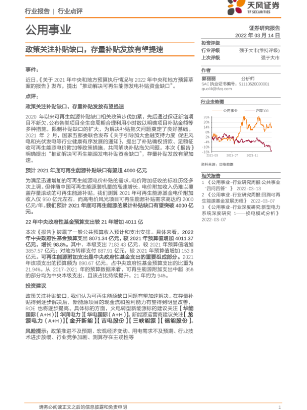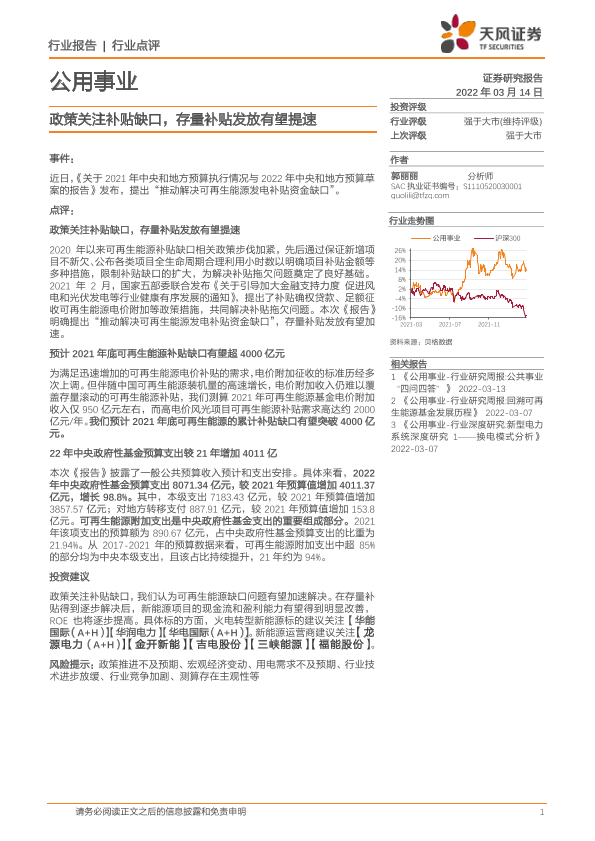 【天风证券】【20220314】政策关注补贴缺口,存量补贴发放有望提速-2页