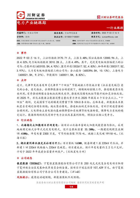 【川财证券】【20220316】电力产业链跟踪-4页